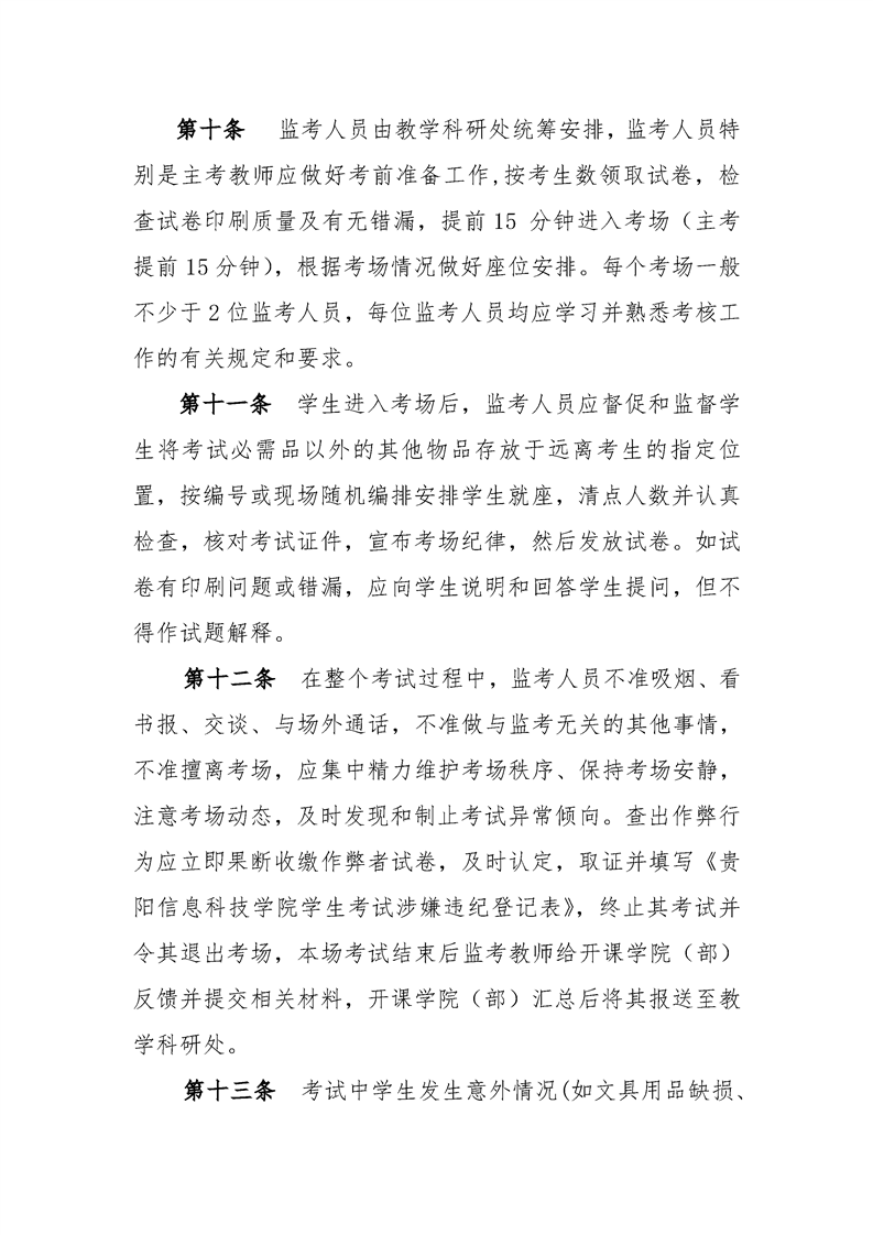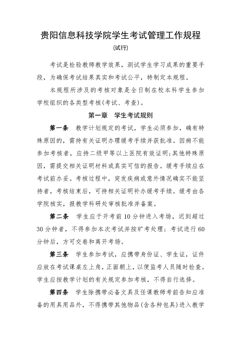 贵阳信息科技学院学生考试管理工作规程(试行)