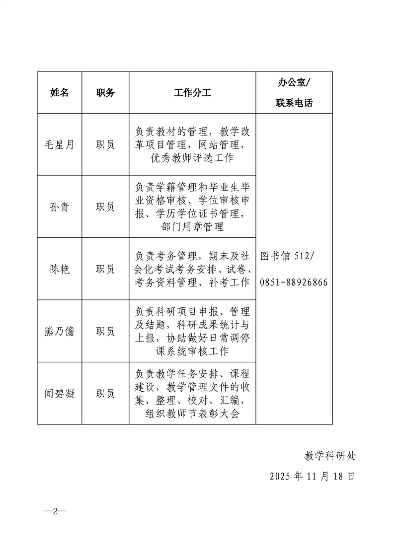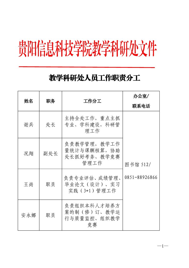 教学科研处人员工作职责分工