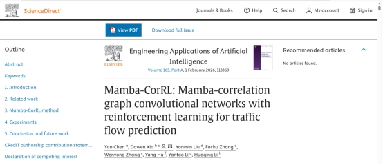 近日,我校智能工程学院陈艳老师为第一作者,贵阳信息科技学院为第一单位,在人工智能与工程应用领域国际权威期刊《Engineering Applications of Artificial Intelligence》(中科院一区top, IF:8)上发表题为《Mamba-CorRL: Mamba-correlation graph convolutional networks with reinforcement learning for traffic flow prediction》的学术论文,标志着我校在智能交通研究领域取得重要进展。