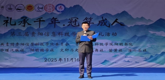 11月16日,我校阳明书院内旌旗舒展、汉服雅致,第三届“礼承千年·冠笄成人” 成人礼活动在此举行。这场融合传统礼仪与红色信仰的仪式,以“党徽耀初心,冠礼承古训”为内核,见证青年学子以“知礼成人”之姿接过“政治成人”的时代接力棒。