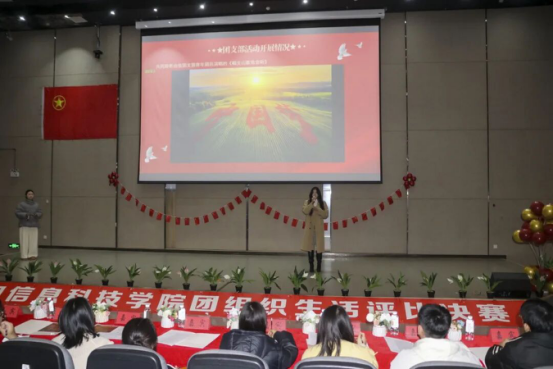 为深入学习宣传贯彻中国共产党第二十届中央委员会第四次全体会议精神,引导广大青年学生自觉将个人理想追求融入中华民族伟大复兴的国家发展大局,在中国式现代化建设的宏伟进程中勇担使命、主动作为,11月26日,共青团贵阳信息科技学院委员会于学校图书馆二楼报告厅举办了以“学全会精神,激青年动能,担青春使命”为主题的团组织生活评比决赛活动。