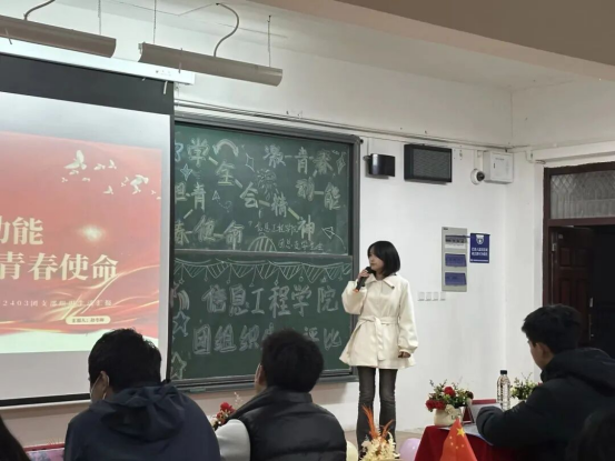为深入学习贯彻党的二十届四中全会精神,全面落实习近平总书记对青年工作的殷切期望,近日,我校信息工程学院举行了以“学全会精神,激青春动能,担青春使命”为核心主题的团组织生活评比活动,旨在搭建理论学习与实践践行相结合的立体化平台,明确新时代青年的责任坐标与行动方向,同时深化基层团组织建设,增强组织凝聚力与号召力。