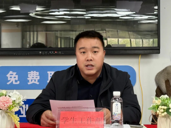 本次聘任仪式按照三项议程有序推进。首先,学生工作部部长张吉林代表各职能部门负责人率先发言,他表示,民情调查员的身份是信任更是责任,调查员们要当好“贴心人”,做学校和学生间有温度的桥梁纽带;要当好“观察员”,做生活中有锐度的信息前哨;要当好“参谋员”,做学校和老师有深度的智慧助手;要当好“宣传员”,做学校政策有广度的宣传使者;要当好“示范员”,做学生中有高度的青年表率。