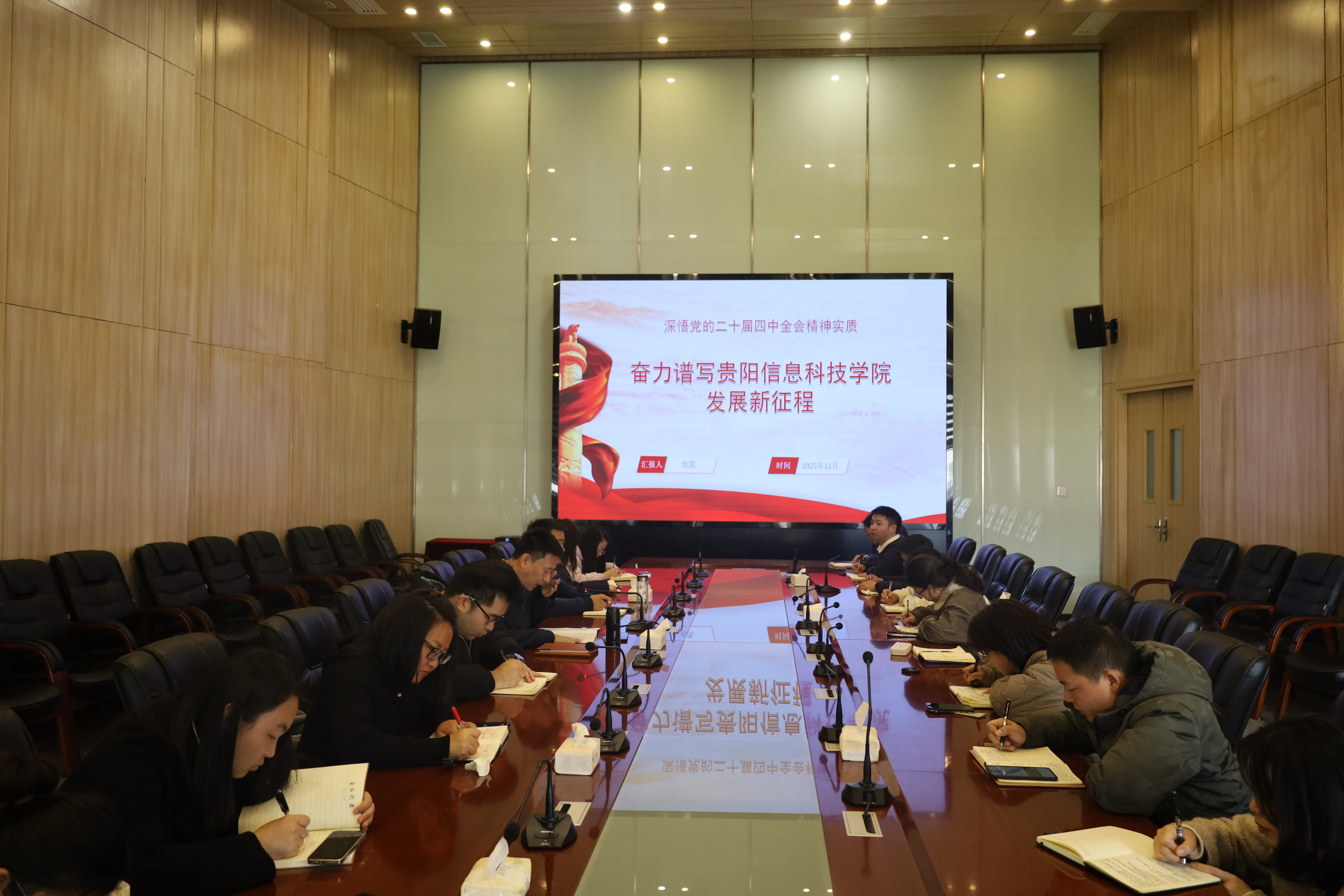 为深入学习领会党的二十届四中全会精神,切实将全会精神转化为推动学校各项事业高质量发展的强大动力,12月8日,我校学生工作部、团委、大学生心理健康教育与咨询中心联合举办深入学习贯彻党的二十届四中全会精神专项学习会议。校党委副书记詹凯作主题宣讲,学生工作部、团委、大学生心理健康教育与咨询中心全体教师参会,会议由学生工作部部长张吉林主持。