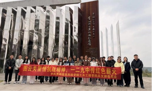 新闻网讯(供稿/供图 土木工程学院)为纪念“一二·九”运动90周年,弘扬爱国主义精神,传承红色基因,12月9日,我校土木工程学院党总支组织师生党团代表赴贵阳图云关抗战纪念馆开展“图云关里悟抗战精神‘一二·九’中传红色薪火”主题党日活动。通过沉浸式学习与互动体验,师生们重温抗战历史,感悟革命精神,凝聚奋进力量。
