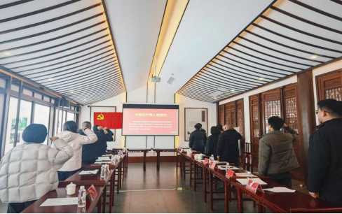 图为全体与会党员重温入党誓词