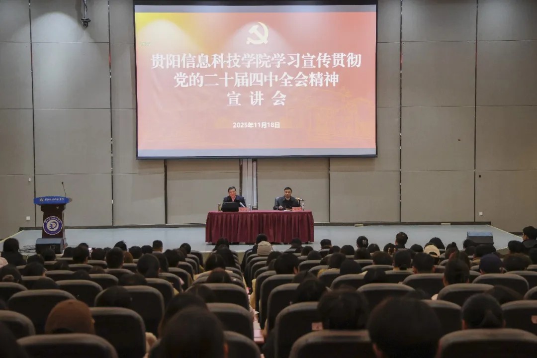 中国共产党第二十届中央委员会第四次全体会议(简称“二十届四中全会”)的胜利召开,为“十五五”时期国家发展锚定航向,更为新时代青年投身强国建设指明实践路径。自大会召开以来,贵阳信息科技学院团委深刻把握全会精神核心要义,立足学校育人实际与青年成长规律,以“青马工程”“贵科菁英”培训为核心抓手,创新构建“五个一”学习实践体系,通过“理论+实践、骨干+全员、线上+线下”的多维举措,引领全校青年学子在深学细悟中坚定理想信念,在知行合一中勇担时代使命,推动党的二十届四中全会精神在校园落地生根、开花结果。