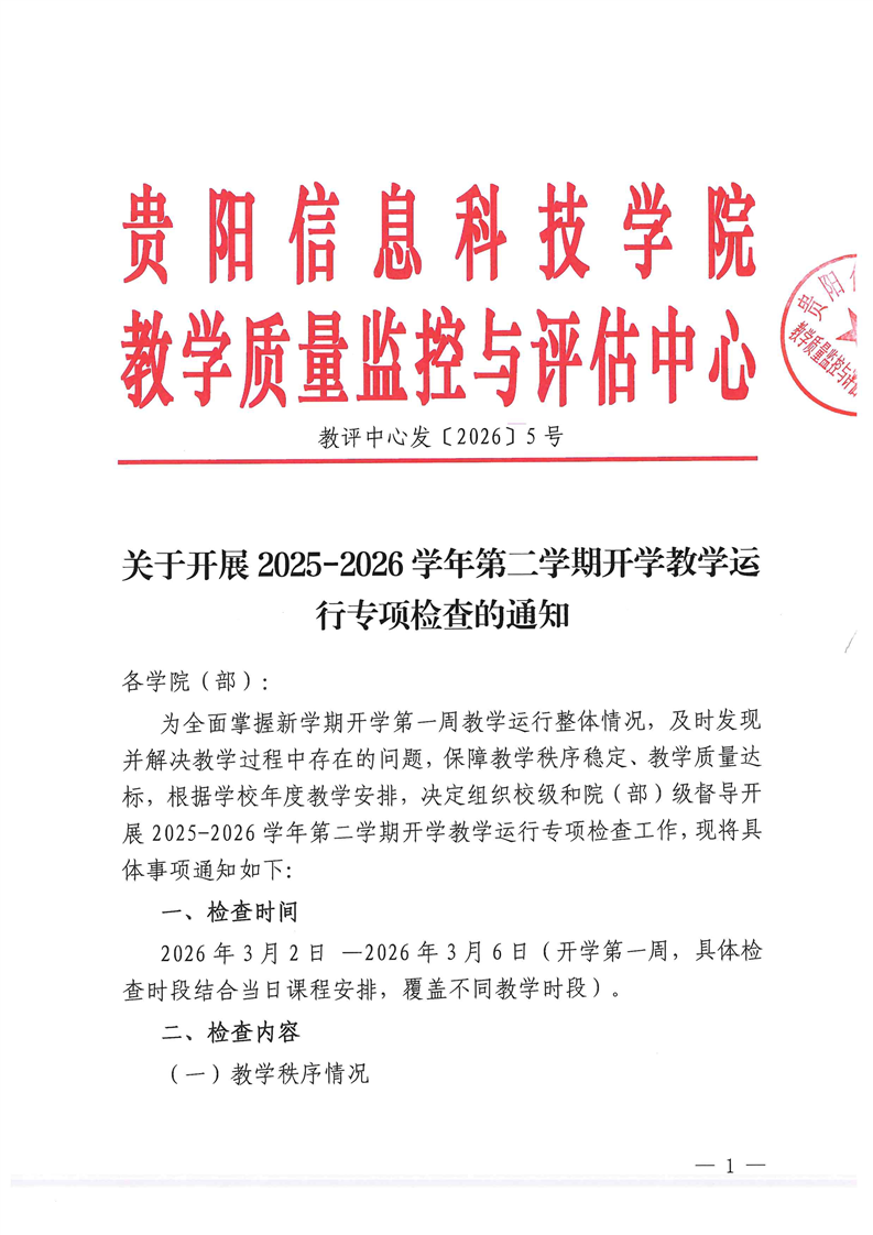 关于开展2025-2026学年第二学期开学教学运行专项检查的通知