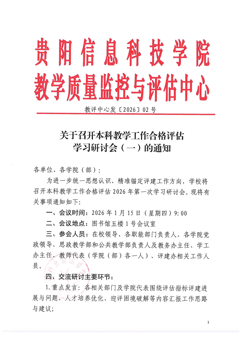 关于召开本科教学工作合格评估学习研讨会(一)的通知