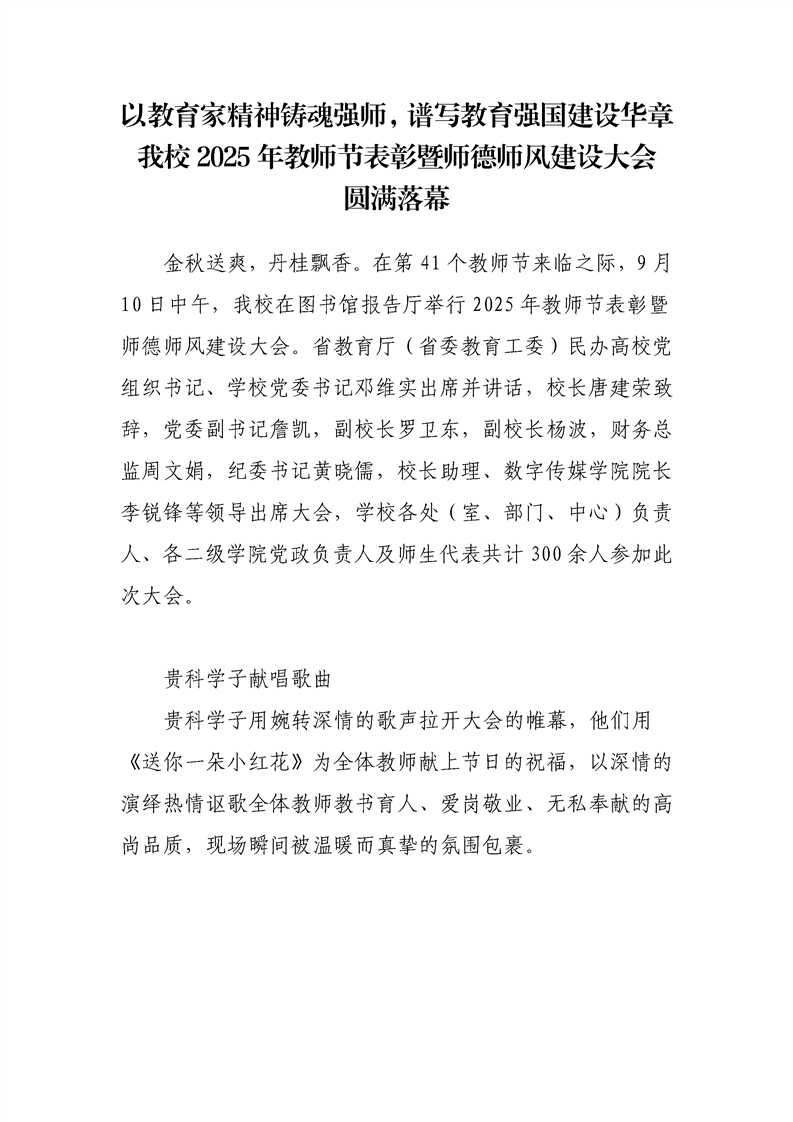 以教育家精神铸魂强师,谱写教育强国建设华章我校2025年教师节表彰暨师德师风建设大会
