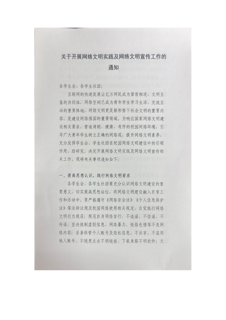 关于开展网络文明实践及网络文明宣传工作的通知