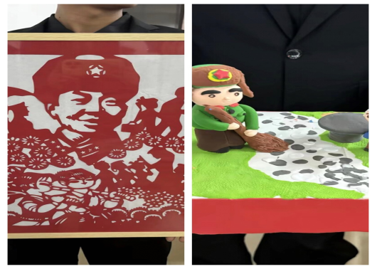 活动开始,主持人张朝阳、马婷致开幕词,向莅临现场的评委嘉宾表示热烈欢迎,并介绍了本次评比的规则与流程。各参赛班级团支部依次上台展示,通过PPT讲解、手工作品、剪纸艺术等丰富形式,生动呈现了班级学习践行雷锋精神的实践成果。从“心灵手巧”手工作品中憨态可掬的雷锋形象,到剪纸作品里栩栩如生的奉献场景,同学们用创意与巧思,将雷锋精神融入指尖艺术,让榜样力量可感可触。