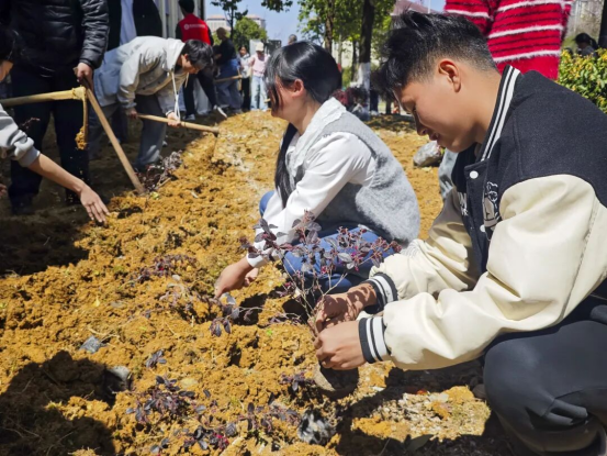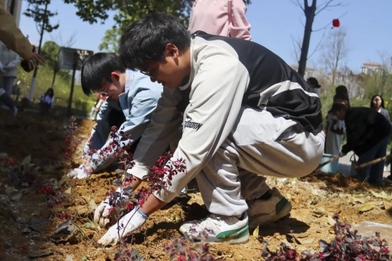 经过近一个小时的齐心劳作,原本空旷的场地里,一排排整齐的新苗很快便挺立起来。在师生们双手的浇灌下,一棵棵新苗挺拔伫立在校园中,为春日的校园增添了鲜活的绿意与蓬勃的朝气。望着自己亲手栽下的小树苗,同学们的脸上都漾起了欣慰又欢喜的笑容。