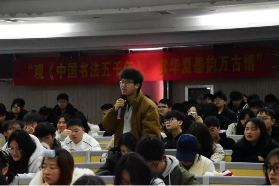 本次活动以观看影片《中国书法五千年》+书法知识答题互动的形式进行,不仅推动了书法艺术在青年群体中的传播与传承,更为师生带来了一场兼具美感与温度的文化盛宴,为学院营造了浓厚的人文艺术氛围。