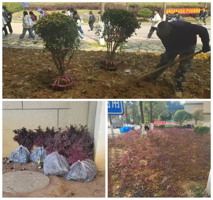 活动前期,后勤处充分发挥职能优势,周密部署、精心筹备。结合校园整体绿化升级规划,选定教学楼C栋与B栋一楼及9号公寓绿地作为重点种植区域,统一调配1100株优质灌木树苗,足额备齐铁锹、水桶、肥料、手套等各类园艺工具。同时,安排专业技术人员提前对种植点位进行勘测、规划间距,为活动顺利开展提供物资与技术支持。校团委积极动员青年学生志愿者,通过提前宣讲、合理分工,凝聚起师生共建绿色家园的强大合力。
