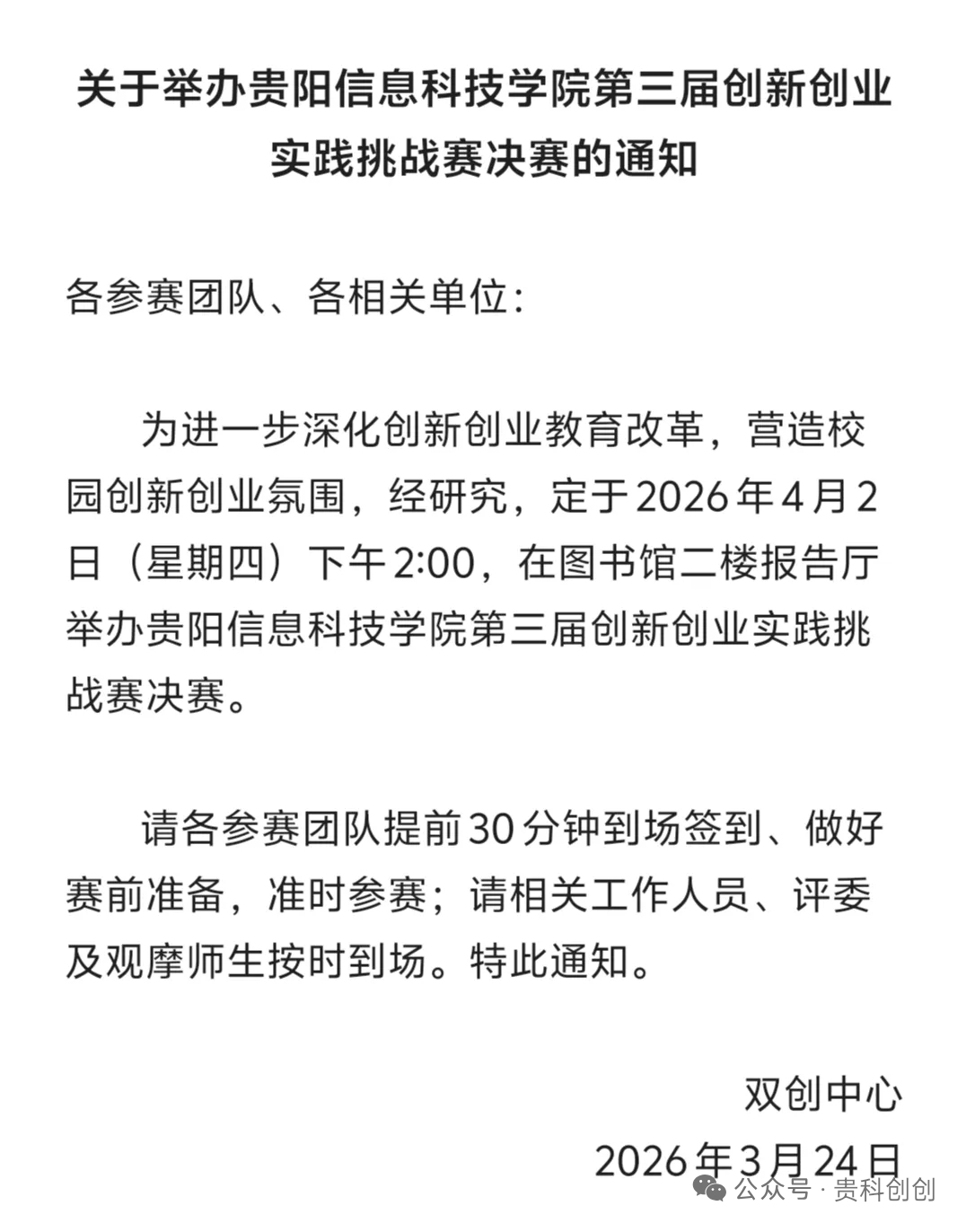 关于举办贵阳信息科技学院第三届创新创业实践挑战赛决赛的通知