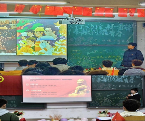 为深入学习贯彻习近平总书记关于弘扬雷锋精神的重要论述,传承践行 “奉献、友爱、互助、进步”的志愿精神,引导青年以实际行动书写新时代雷锋故事。近日,我校信息工程学院于在B210教室开展“以行动诠释雷锋,用奉献闪耀青春”为主题的团组织生活评比活动。