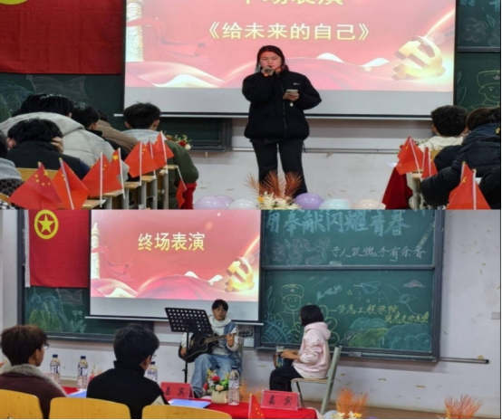 活动中场还进行了精彩的文艺表演,歌曲《给未来的自己》温暖治愈、清澈坚定,舒缓评比氛围、传递温情与初心力量,让雷锋精神在歌声中充分彰显。终场的器乐表演,吉他与鼓合奏温柔激昂、青春热血,鼓点与旋律交织点燃现场,以奋进姿态为活动画上圆满句号。