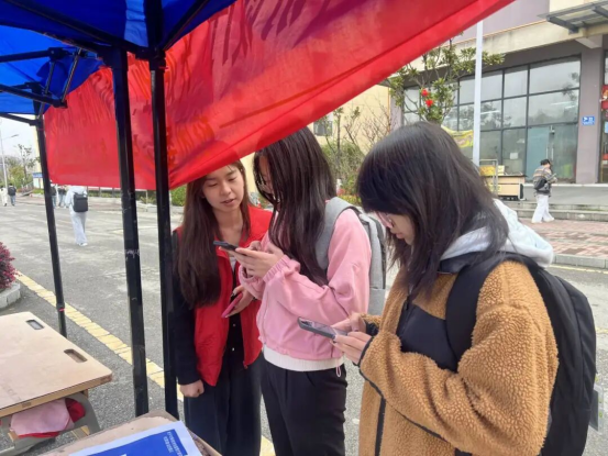 摆点现场,工作人员用通俗易懂的话语向过往同学系统、全面的介绍关于有效提出建议的渠道,同时引导过往同学通过微信扫码填写《关于我校学生管理方面和社团建设的建议》,围绕我校在学习和生活中对学生管理的有关问题、社团建议等内容收集,以便后续学校深化学生管理规范,整改社团并激发社团活力提供数据支撑。