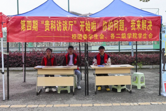 畅通师生沟通渠道,深化学生管理规范化建设,激发社团发展新活力。3月23日至3月25日,我校团委学生会联合六大学院学生会在学校一食堂和二食堂进行第四期 “贵科访谈厅”摆点活动,围绕学生管理和社团建设主题,共收集144条相关意见、建议与诉求。