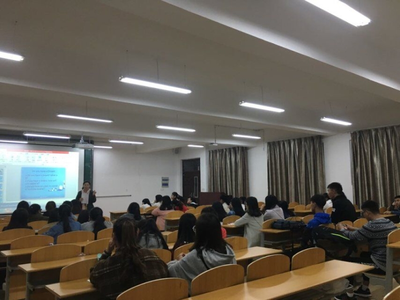 我院英语角第三期活动于2017年11月16日星期四下午18:00,在教学楼D栋305教室举办,本期英语角主讲老师事我系英语口语专业的唐春艳老师,她给同学带来了全新的口语讲课方式,唐老师总是鼓励同学们踊跃参与英语活动,勇敢地站在台上用英语表达自己的想法,告诉同学们不要害羞,要勇于表现自己。同学们的表现也没有让老师失望,每个人都积极踊跃发言,有的同学说的不好但是足够勇敢。成功迈出了舞台第一步,本次活动圆满成功,同学们积极响应每一次英语角的活动,希望更多爱好英语的同学们加入进来哦!