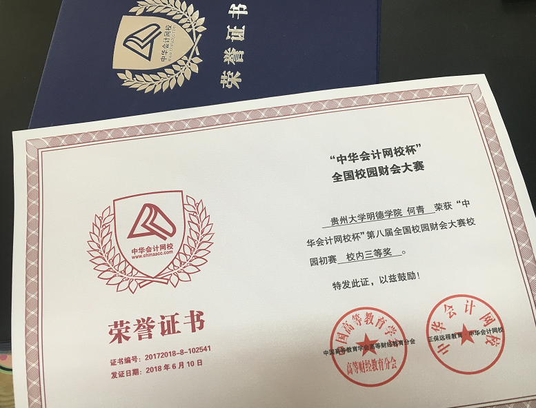 2018年4月27日至5月14日,我系组织了财务管理专业、会计专业700余名学生参加了“中华会计网校杯”第八届全国校园财会大赛初赛,本次大赛由经济系的赵芸老师、尹顺秋老师担任指导老师。通过激烈的角逐,最终杨傢焮,康睿,赵兴芳、徐家惠,何晶,何青6名同学获得一、二、三等奖,前三名同学代表我院参加贵州省的省赛。