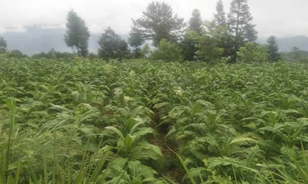 首先,楠木村党支部书记赵寿国引领大家参观了烤烟基地,并为同学们介绍了当地烤烟的产业种植情况。烤烟基地是2015年政府下达的一项扶贫产业项目,到现在已达到10000多株的规模,这项产业扶贫方式是租用农户的地,再雇农户种植,让农户有租金、有薪资,从而提高农户的经济收入。烤烟种植工序过程繁杂,后期管理更是需技术引进。期间,队员们积极提问,赵书记等人耐心、详细为大家解答。