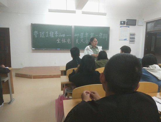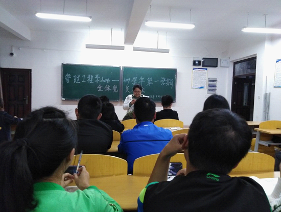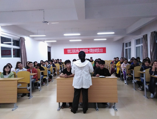 新闻网讯(高开艳供稿)2018年9月12日晚上6点30分,管理系党总支在B栋310教室召开了2018-2019学年第一学期全体党员大会暨学习习近平总书记在全国宣传思想工作会议上的重要讲话精神,我系全体学生党员参加了此次会议。