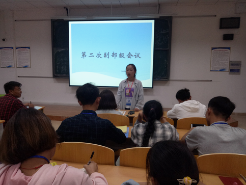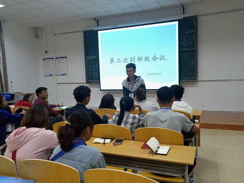 首先由我系团总支学生会主席安排相关工作,强调了各部门必须各司其职,处理好部员之间的关系。