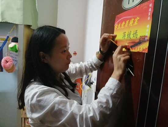 第二部分:对学生党员所在的19间寝室进行贴标。对新党员寝室进行贴标,就是为了时刻提醒党员身份,让广大党员同志能以身作则,严于律己。