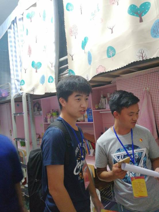 在我系党总支负责人徐娟老师的统一安排、学生第三党支部的组织下,2018年9月25日晚上7点,进行了本学期第一次党员模范寝室评比活动。