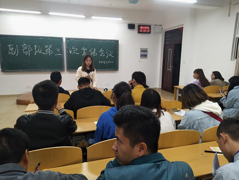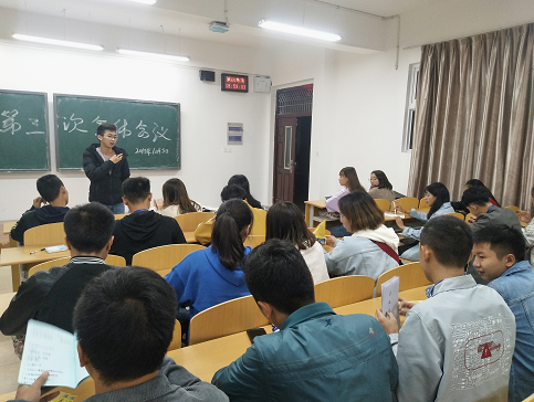 其次,由组织部部长穆环宇对“践行社会主义核心价值观,弘扬中华民族传统文化”主题团组织生活评比的各部门职责进行安排。办公室负责多媒体教室的申请,演讲的PPT进行调试;素拓部负责各班的签到;凤仪舞组负责主持人以及礼仪人员;学科部负责计时和算分;宣传部负责活动宣传,宣传海报的制作;生活部负责对活动所需的物品和器具进行购买;各部门各尽其职把这个活动做到最好。