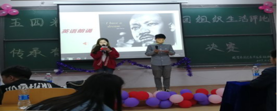 本次团组织生活评比活动也即将接近尾声,现在所有团支部PPT解说员已全部解说完毕,由信息系组织部代表对第二组讲解进行了点评,接下来由学生会文艺部带来英语朗诵《I have a dream》,最后又由经管系团总支主席欧超智对本次活动进行了总结。他说道:我们青年一代是国家之精华,革命之先锋,为弘扬五四精神,彰显青少年青春活力。在激烈的竞争中,最后由工商1701班摘得了本次评比活动第一名的桂冠,电商1703班,英语1801班分别获得了第二名和第三名的好成绩。
