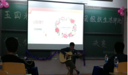 随之,文艺部带来了吉他弹唱《玫瑰》。听了文艺部小伙伴的弹唱后,让我们更加心生澎湃,让我们知道当代青年应当认真弘扬五四精神,将五四精神永远传承下去。从五四爱国运动中,我们就看到了青年人的勇气与担当,而作为当代青年,我们更应该肩负时代赋予我们的历史任务,做一位有理想,有本领,有担当,有责任的时代青年。第二组选手当然也是拿出了最好的状态,各位讲解员们精神饱满,向评委和观众们细心地讲解学习五四精神的价值所在,并展示了精美的手工艺品。