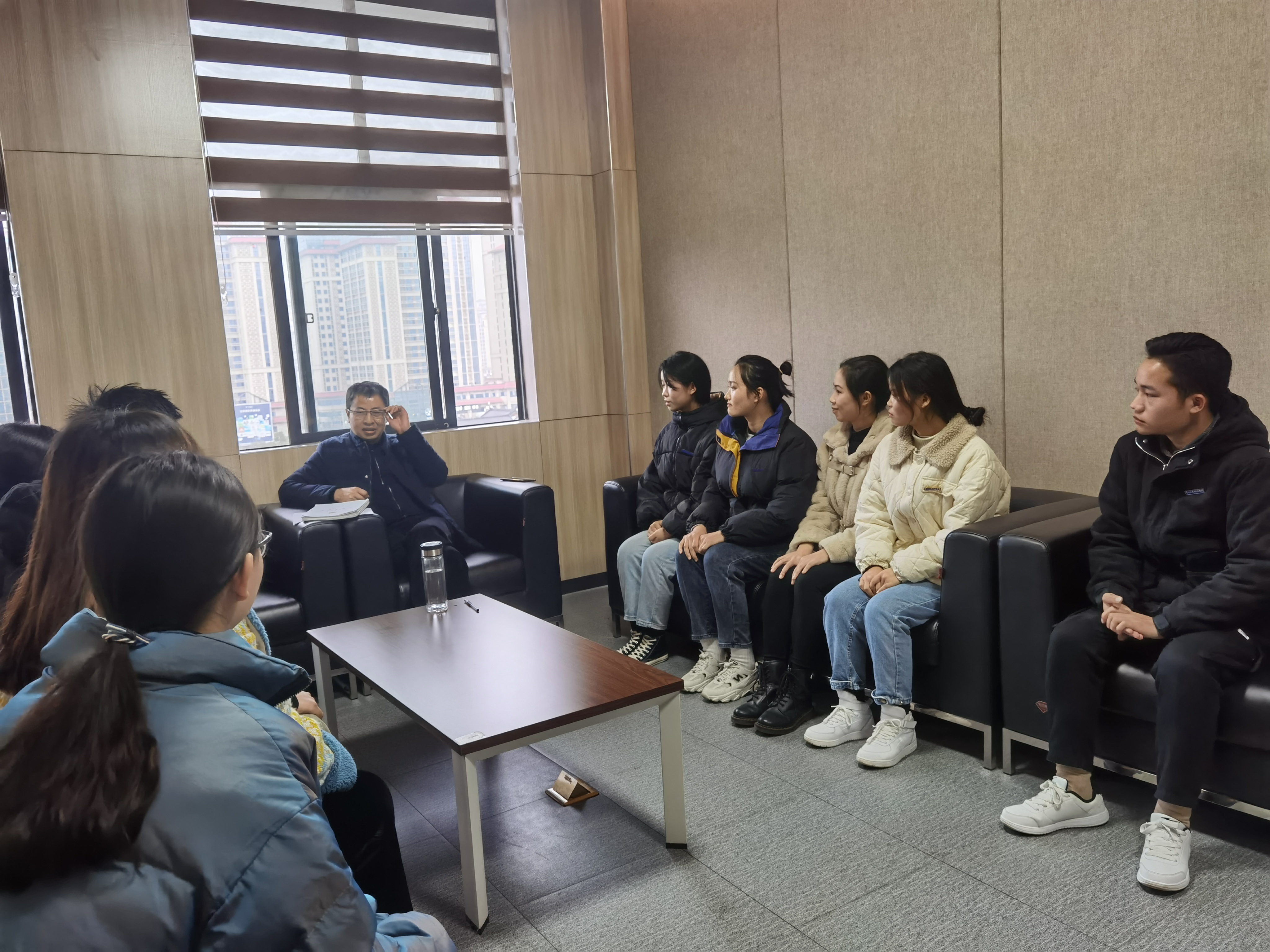 2020年11月25日下午4点,数字传媒系总支委员会在贵州大学明德学院图书馆五楼会议室开展关于数字传媒系党总支第十一期预备党员谈话。本次谈话的参与人员有贵州大学明德学院党委书记郭林桦同志,贵州大学明德学院数字传媒系党总支负责人张雪同志、数字传媒系学生第一党支部书记徐娟同志,数字传媒系学生党支部第十一期预备党员。