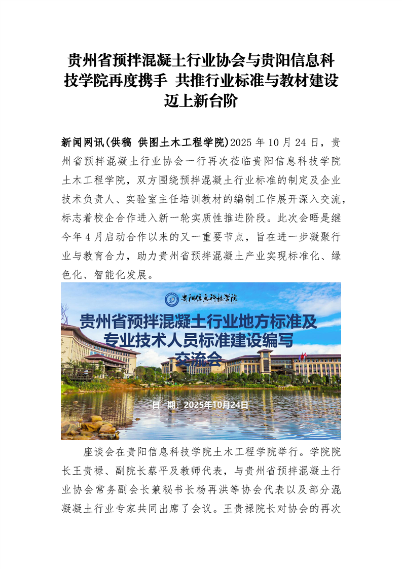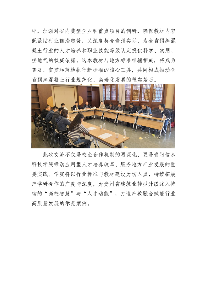 贵州省预拌混凝土行业协会与贵阳信息科技学院再度携手 共推行业标准与教材建设迈上新台阶
