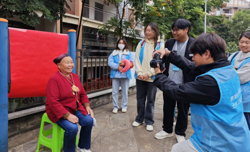 学生为社区老人拍照