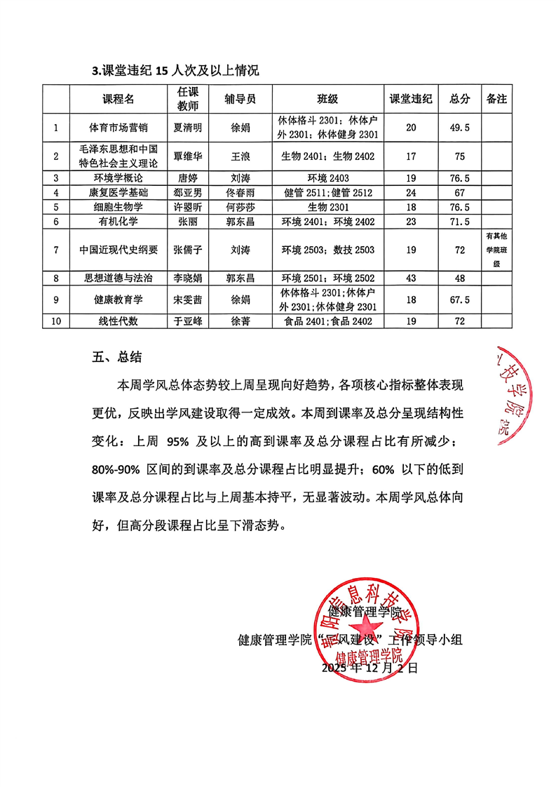 健康管理学院2025—2026学年上学期第十二周学风巡查督导工作简报