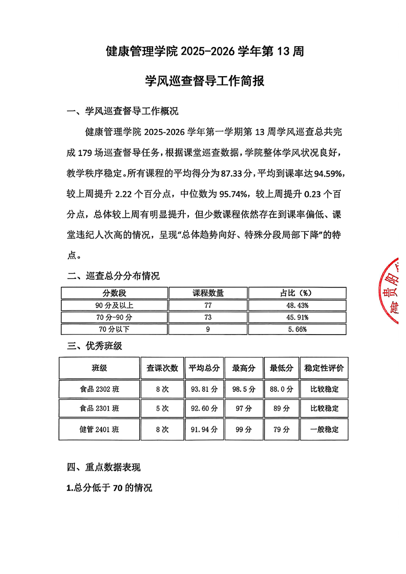 健康管理学院2025—2026学年上学期第十三周学风巡查督导工作简报