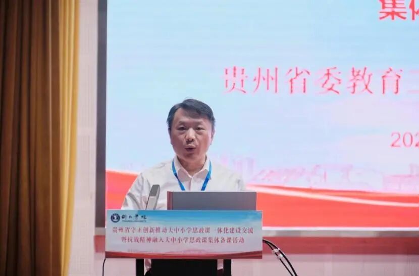 开幕式上,省委教育工委副书记李军作了讲话,指出近年来,省委省政府高度重视学校思政课建设,在教育战线全体同志的共同努力下,全省思政课建设取得了明显成效。他强调,要深入学习贯彻习近平总书记关于思政课建设的重要指示精神和省委书记徐麟在贵州师范学院调研时的讲话精神,进一步强化政治引领,坚持守正创新,加强系统谋划,着力破解大中小学各学段思政课衔接难题,守正创新推动贵州大中小学思政课一体化建设取得新成效。