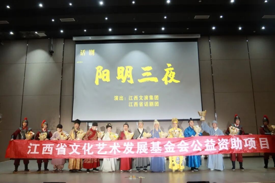 话剧《阳明三夜》以独特叙事结构打动全场观众。该剧聚焦王阳明江西生活期间的“新婚之夜”“平叛之夜”“临终之夜”三大关键人生节点,以写意诗化的舞台呈现与细腻生动的人物刻画,艺术化再现了这位“立德、立功、立言” 三不朽圣人的传奇人生,深度阐释了“知行合一”“致良知”的核心心学思想。演员们凭借深厚的专业功底,以真挚动人的演绎让历史人物丰满鲜活,引导观众跨越时空阻隔,深度沉浸于王阳明的精神境界,真切体悟他困境中的执着坚守与抉择时的坚定信念。当剧中“此心光明,亦复何言”的经典台词响起,全场掌声雷动,久久不息。
