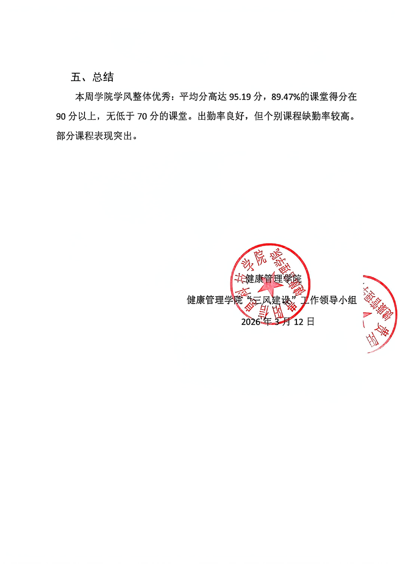 健康管理学院2025-2026学年第二学期第2周学风巡查工作简报