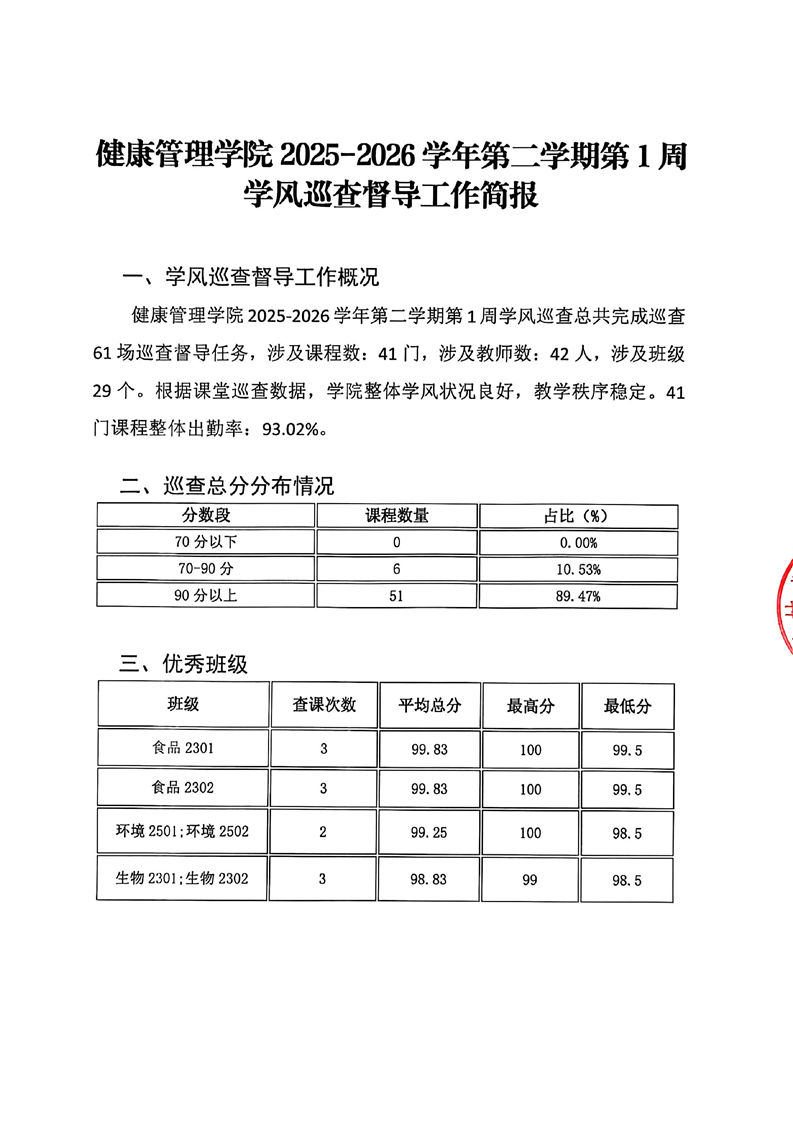 健康管理学院2025-2026学年第二学期第1周学风巡查工作简报