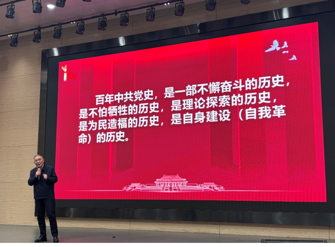 课堂上,唐建荣教授沿着中国共产党百年奋斗的历史进程,系统讲述了党的光辉历程与伟大成就,史料翔实、逻辑清晰,展现了深厚的理论功底。王韦韦老师现场演绎了多首经典红色歌曲,激昂的旋律与深情的演唱交织其中,使党史知识从书本走向鲜活体验。整堂课气氛庄重而热烈,党史与音乐相互交融,思想性与艺术性相得益彰。