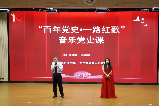 课上,唐建荣介绍道:“百年党史,一路红歌”音乐党史课是我校近年来创新打造的文化育人品牌。通过生动的党史讲述、经典的艺术赏析、系统的技能训练和丰富的实践活动,让师生在聆听中铭记历史,在品味中贯通古今,在演练中陶冶情操,真正体会红色音乐所传承的精神内涵与时代力量。