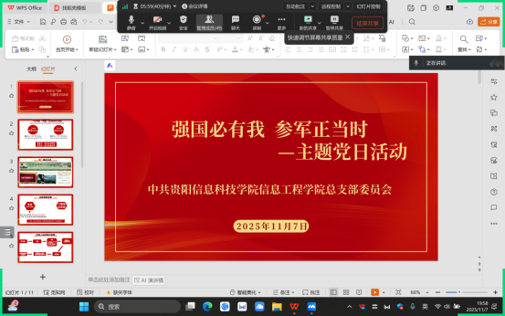 学院特邀退役复学党员学生参加本次线上主题党日活动分享,从政策宣讲、征兵体检、军旅经验分享等多维形式,为学子们带来了一场干货十足的 “参军指南”,让大家在全面了解征兵相关事宜的同时,收获了实用信息与青春奋进的力量。
