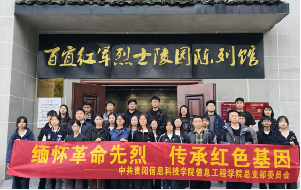 为深入实施学校党委“六度党建”工作模式,持续深化总支“123”党建品牌建设,2026年4月3日,在清明节来临之际,信息工程学院党总支组织师生代表赴贵阳市乌当区百宜红军烈士陵园,开展“缅怀革命先烈,传承红色基因”主题教育活动。活动由学院副院长、教工党支部书记吴世超带队,教工党支部、学生第一、第二党支部及团总支师生代表共同参加。