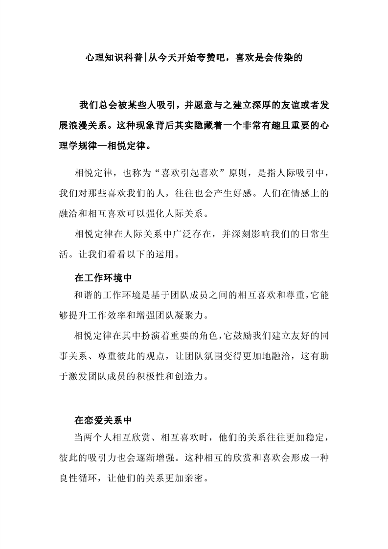心理知识科普—从今天开始夸赞吧,喜欢是会传染的