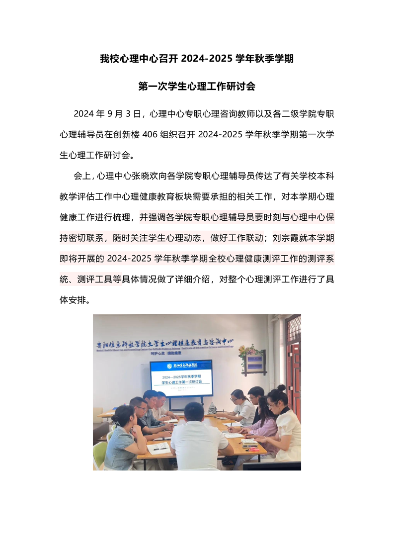 我校心理中心组织专职心理辅导员召开2024-2025学年秋季学期第一次学生心理工作研讨会