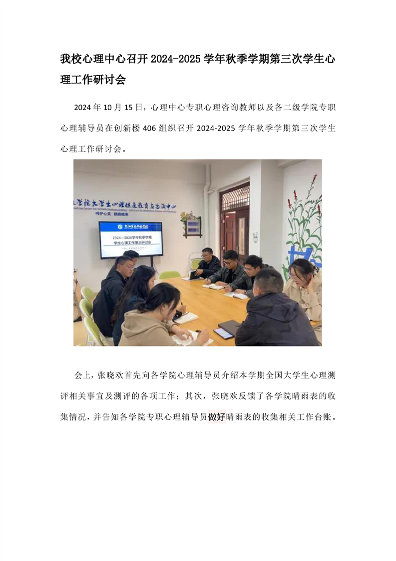 我校心理中心召开2024-2025学年秋季学期第三次学生心理工作研讨会
